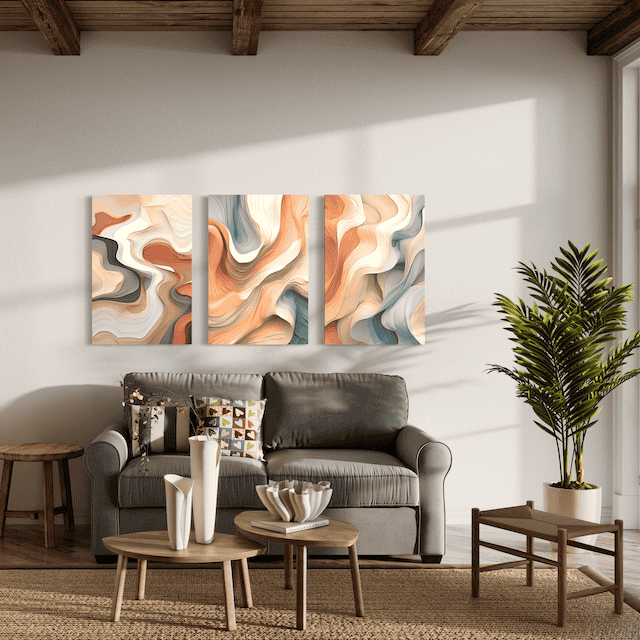 Triptyque Abstrait Désert & Brume – Tons chauds pour une ambiance harmonieuse